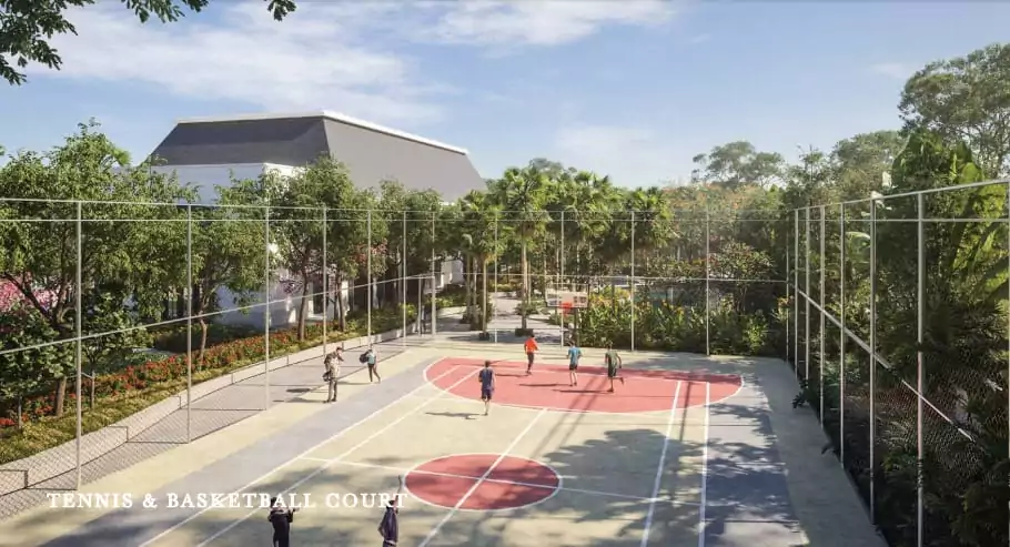 Di atas adalah gambar ilustrasi fasilitas yang terdapat di kawasan perumahan Ciputra Halim. Fasilitas yang ada terdiri dari kolam renang yang luas, taman bermain anak, lapangan tenis dan basketball court.